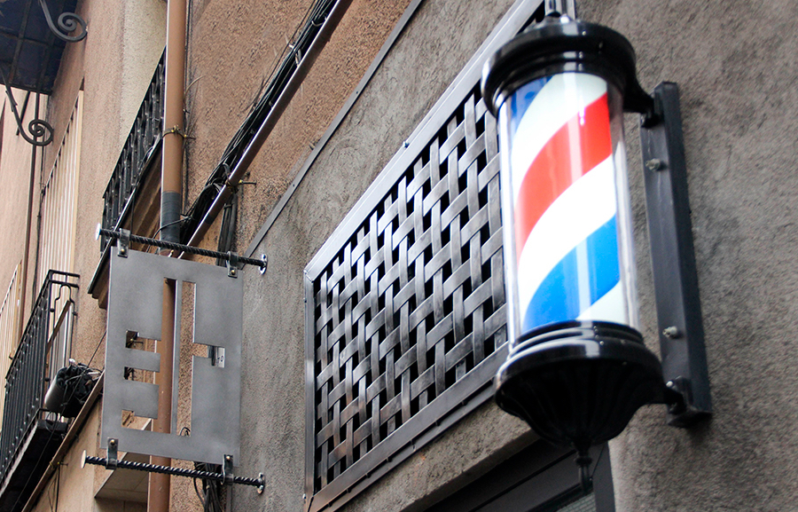 Para la peluquería Roberto Carrillo diseñamos y realizamos diferentes piezas en acero y mármol, entre las que se incluyen cartel con logo, percheros, tiradores, puertas correderas, lava cabezas, estanterías, espejos y algún otro mueble.