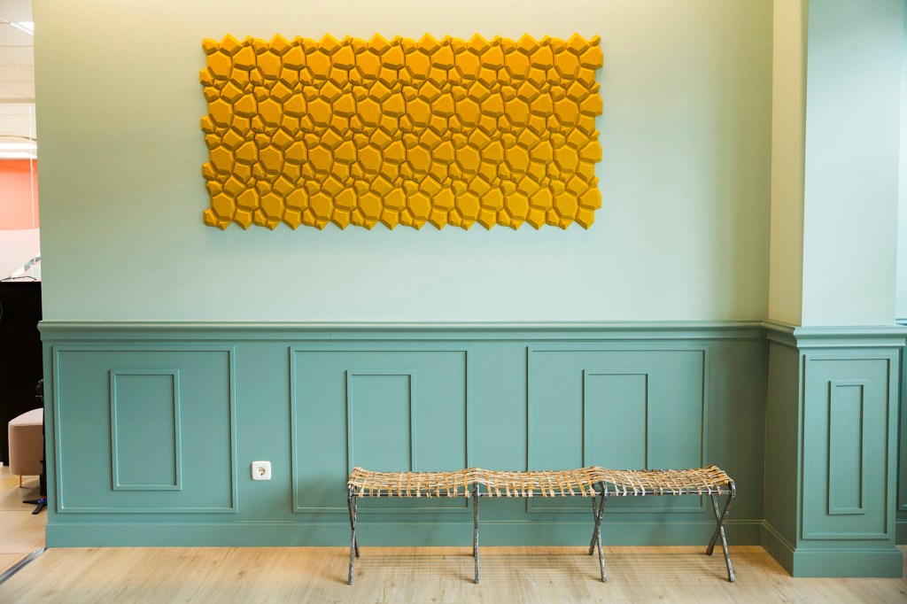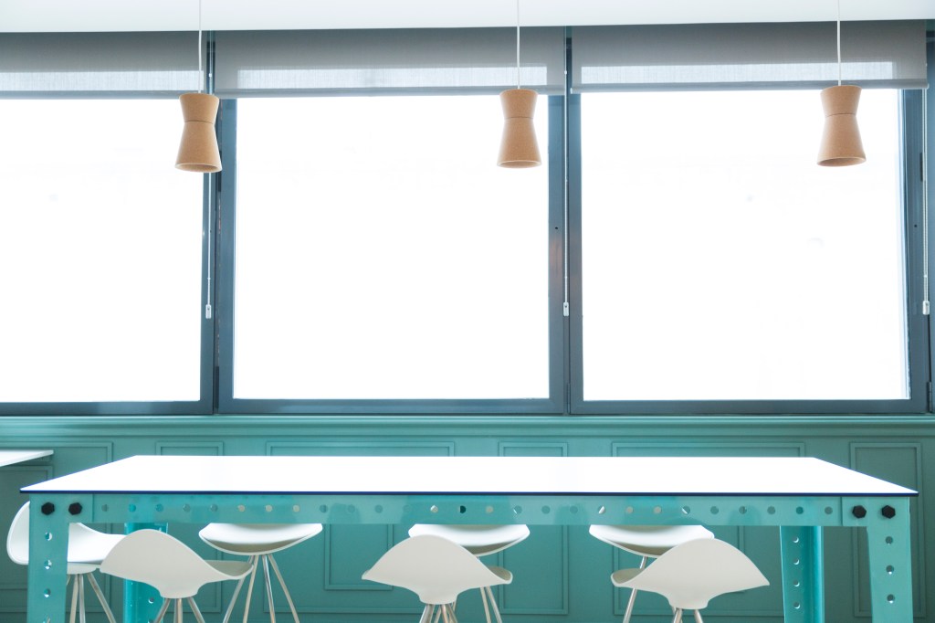 Lo primero que hemos hecho fue eliminar las barreras visuales permitiendo inundar el espacio de luz exterior aprovechando los grandes ventanales que había allí para mejorar el bienestar de sus futuros usuarios. Hemos usado una paleta de colores fresca que, junto con la elección de materiales visualmente ligeros, han acentuado lo distendido del ambiente. Se ha elegido y cuidado la luz para que sea adecuada y confortable. Hemos diseñado mobiliario inspirado en uno de esos juegos de la infancia que permiten pasar tardes enteras inmerso en un mundo de fantasía, intentando dejar con ello algo de aquel perfume.