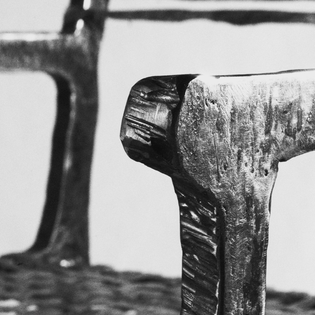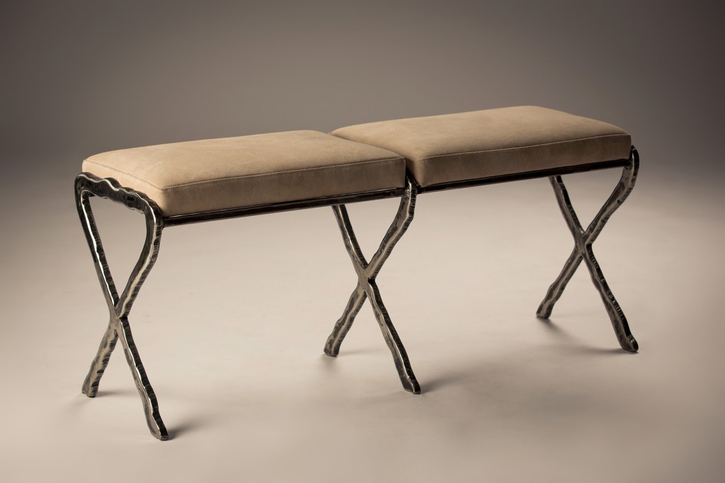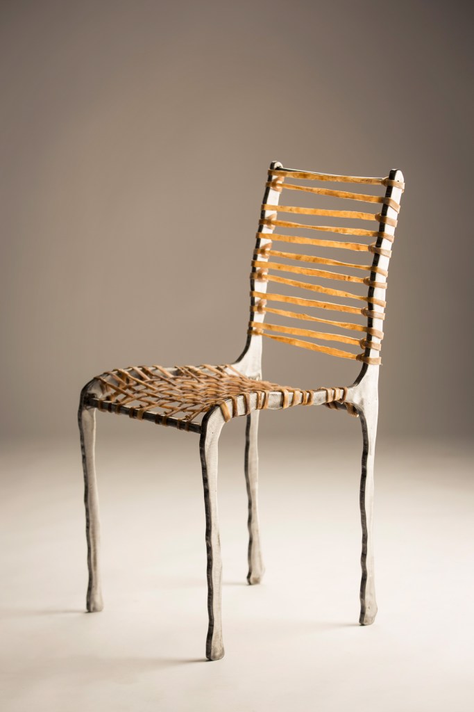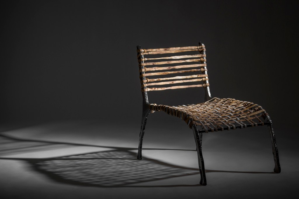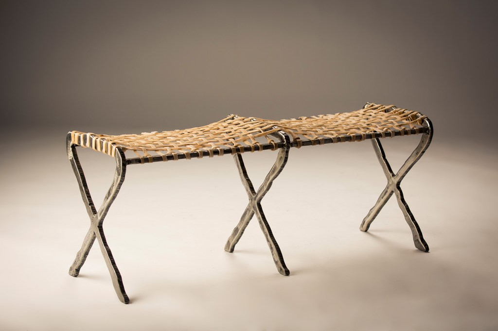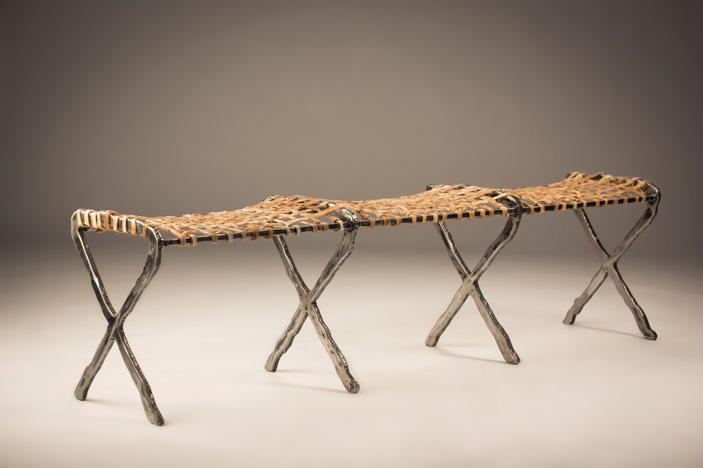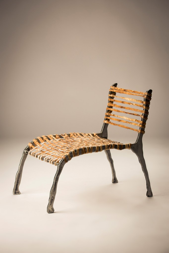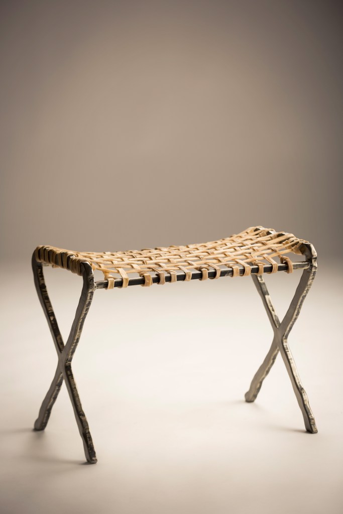 Esta colección de marcado carácter combina una muestra de trabajo en tiento, cuero muy rudimentario como el que supo estar presente en muchos de los elementos y herramientas cotidianas del gaucho argentino, con las poéticas irregularidades y cicatrices que quedan en el hierro tras el trabajo y el paso del tiempo.